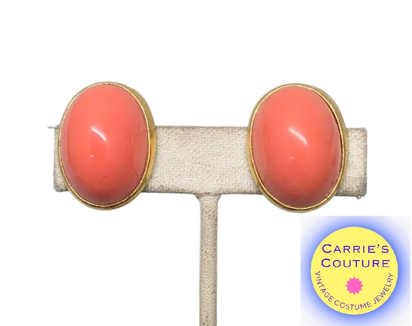 Vintage Signed Alexis Kirk Cabochon Faux-Coral Clip Earrings